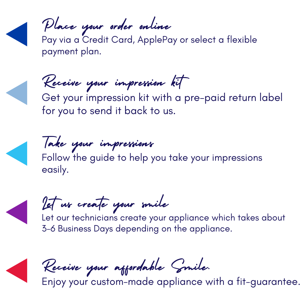 Your smile is way closer than you think! Follow these easy instruction and receive you 100% custom made affordable appliances.